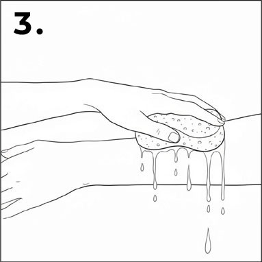 nassen Tuch oder Schwamm einweichen und dabei mit leichtem Druck auf der Hautstelle fixieren..